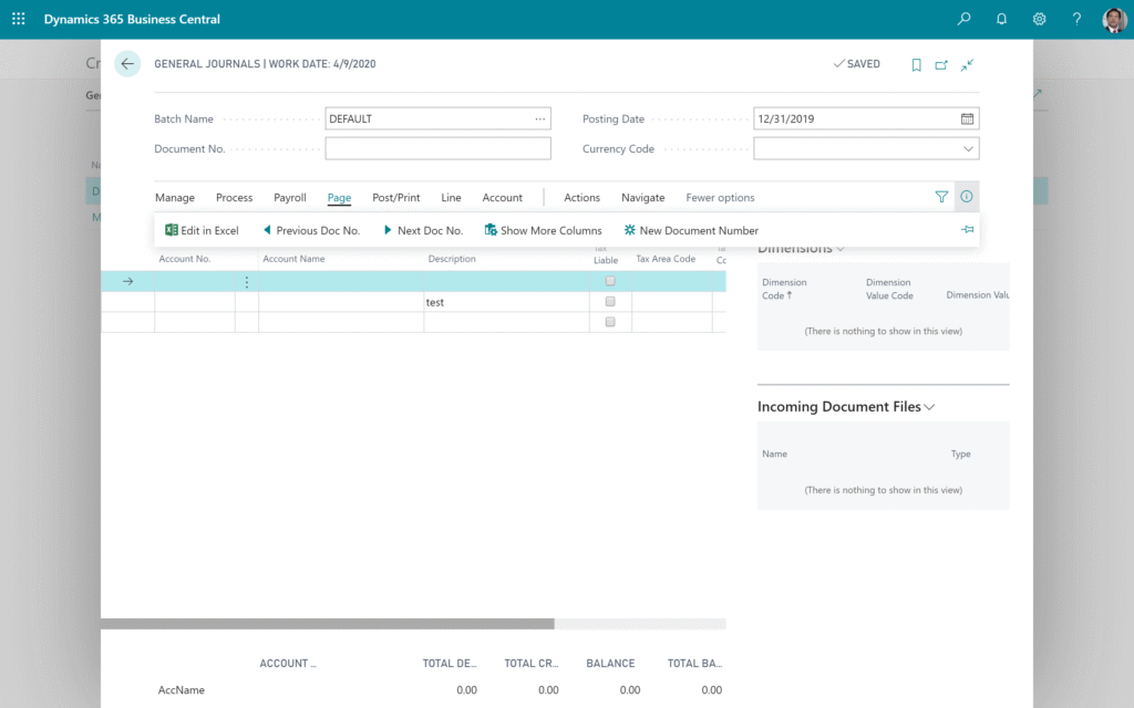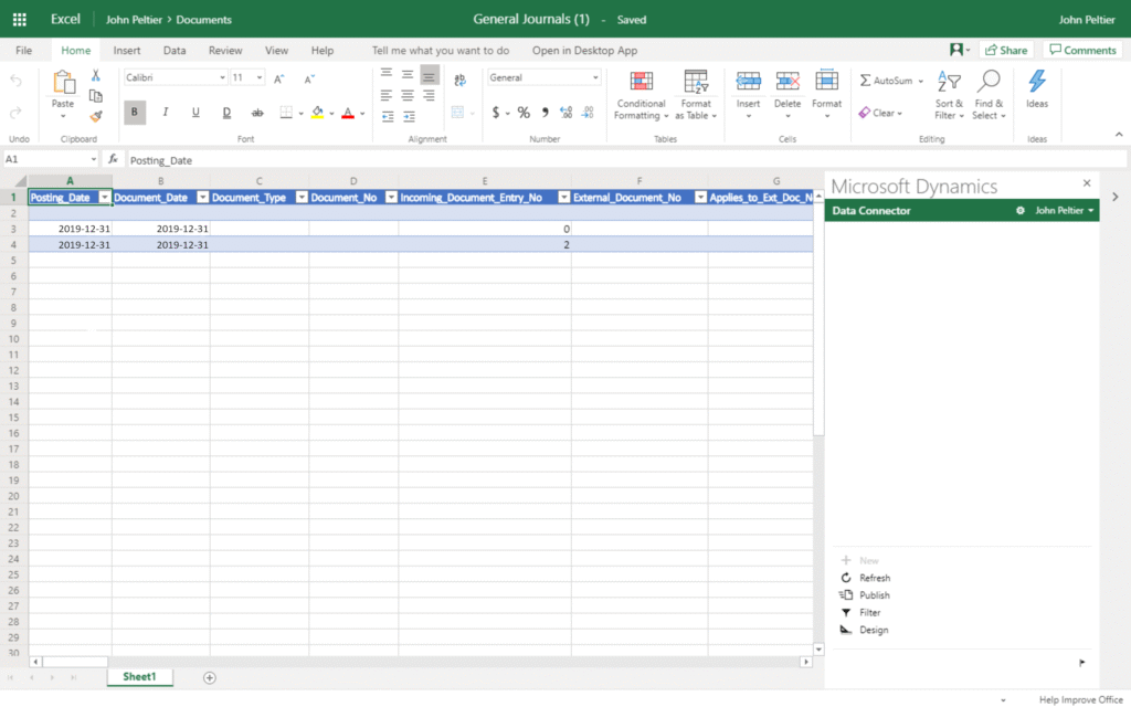Dynamics 365 Business Central allows you to create and modify entries directly with Excel. The next scenario demonstrates this capability for journals.