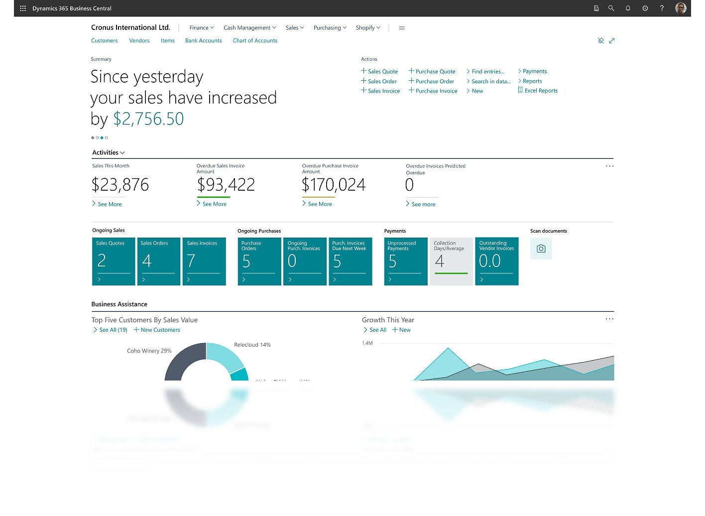 Dynamics 365 Business Central empowers you to adapt faster with the insights needed to make quicker, more informed decisions. Deep integration tools like Outlook and Excel, an intuitive interface, and AI-driven insights, within Dynamics 365 Business Central make it easy to work smarter and perform better across your entire business, by managing sales, inventory, and other processes as you chart your future growth.